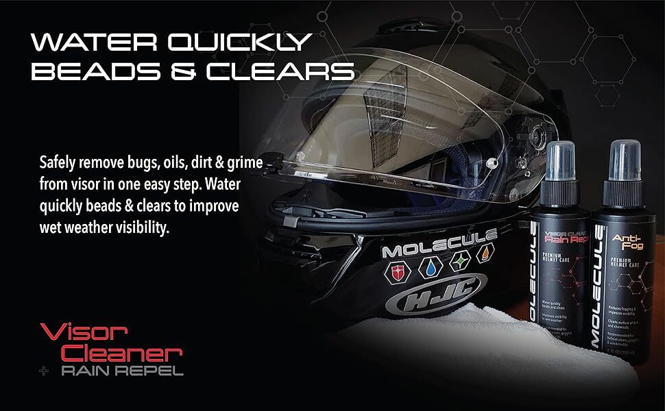 The MOLECULE VISOR CLEANER safely cleans the external visor of a hard hat while improving visibility in wet weather. The formula is easy to apply and also prevents rain and other liquids from sticking to the mask. Suitable for masks, goggles and windshields.
