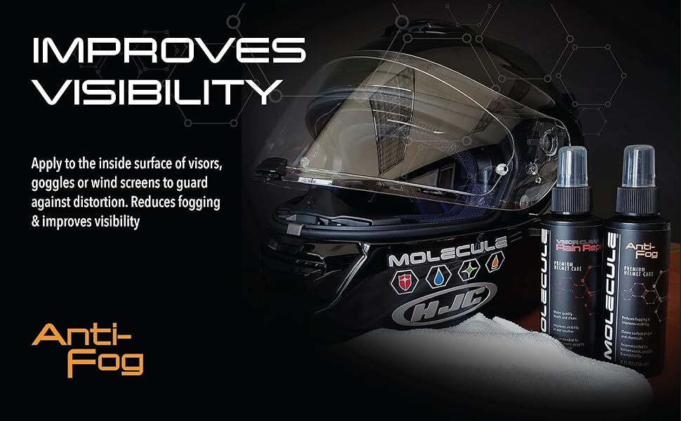 MOLECULE ANTI-FOG improves vision and is designed to suppress moisture inside the mask caused by fogging. Applicable to the inner surface of masks, goggles or windshields to prevent deformation.