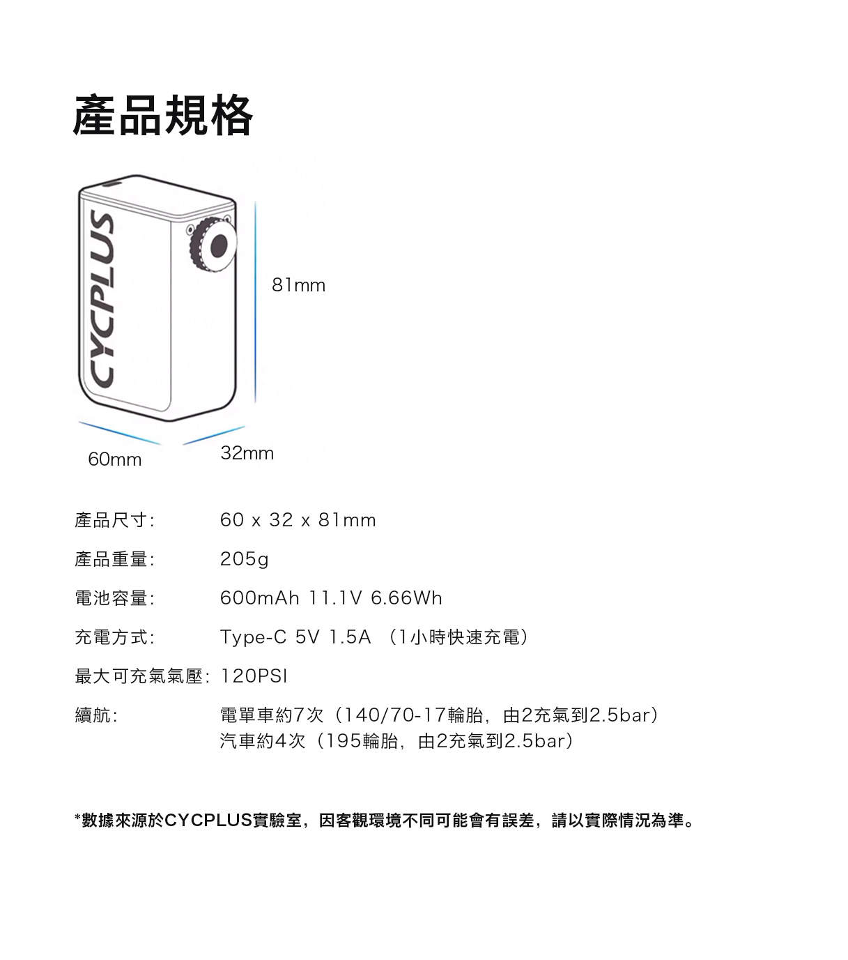 體積輕盈,同時能支援最高 120psi (8.3 bar)