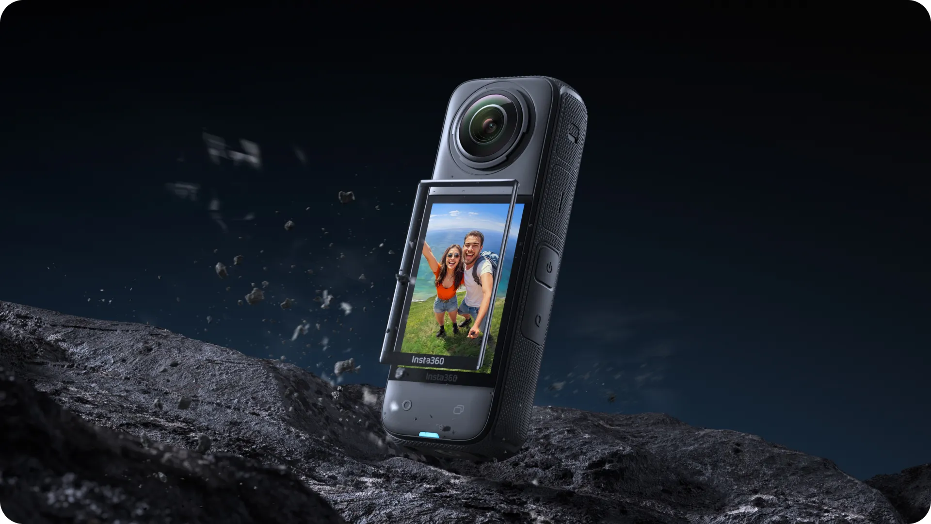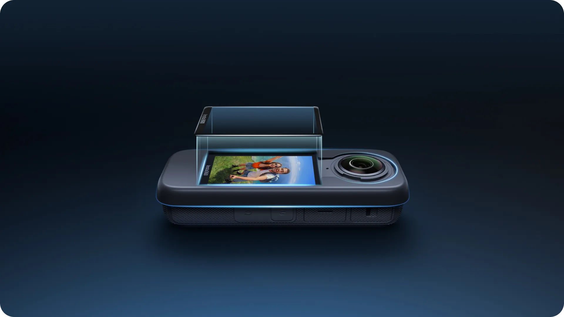 從螢幕保護貼的鏡頭端向「Insta360」端刮擦,直到完全去除氣泡。
