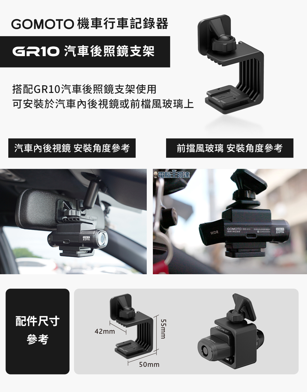 此支架可安裝於汽車內後視鏡或前檔風玻璃當前錄或後錄使用。