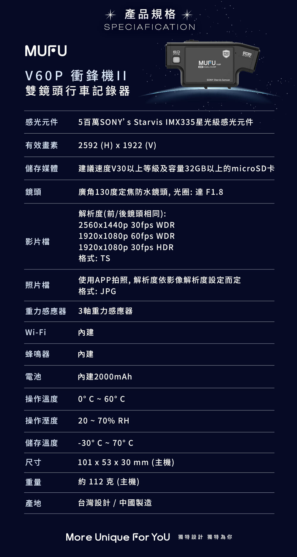 .前後錄鏡頭搭載SONY IMX335星光級夜視鏡頭
