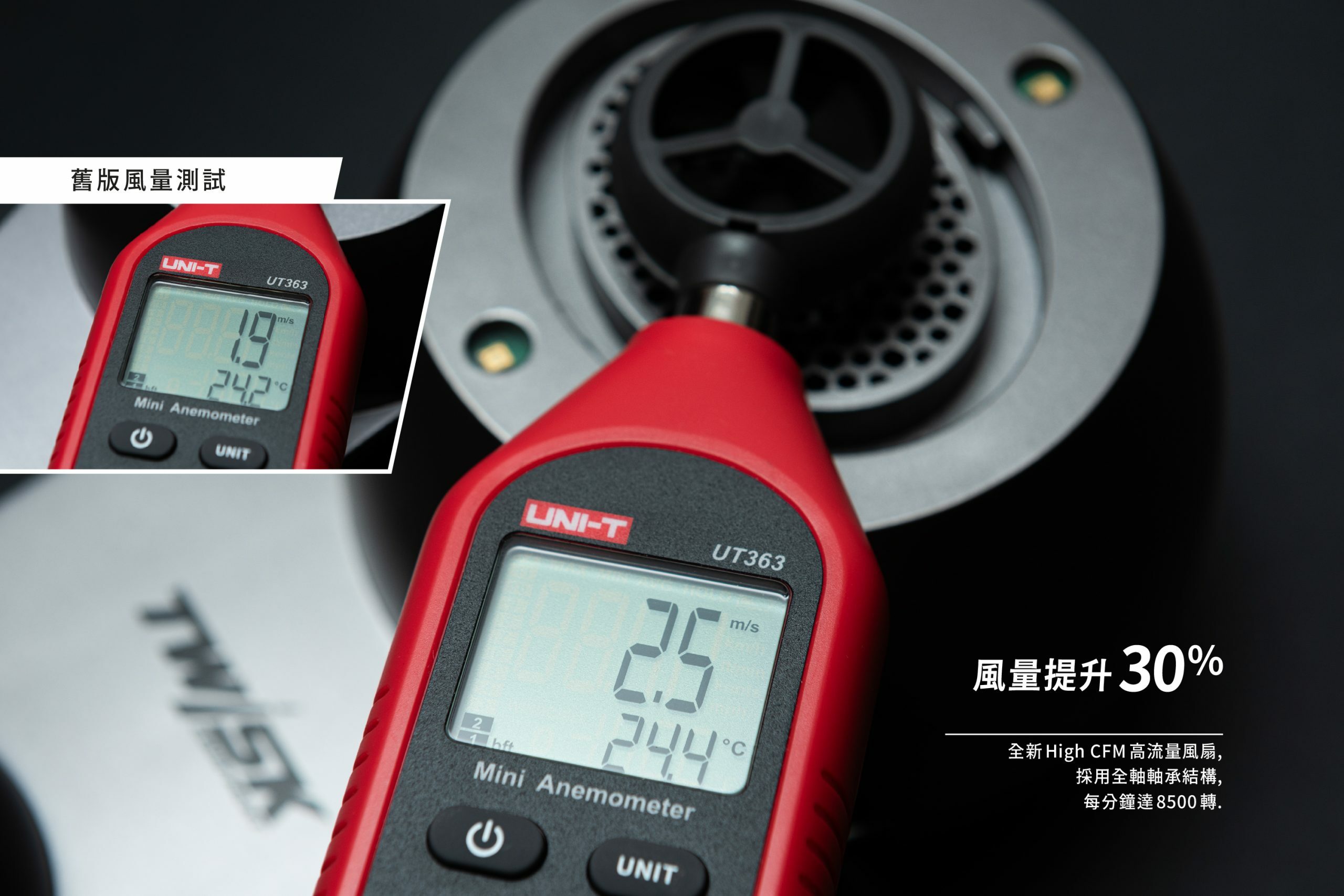 全新包裝,升級採用High CFM 高流量風扇。(新款機身印有TWISK EQUIPMENT商標以資識別)