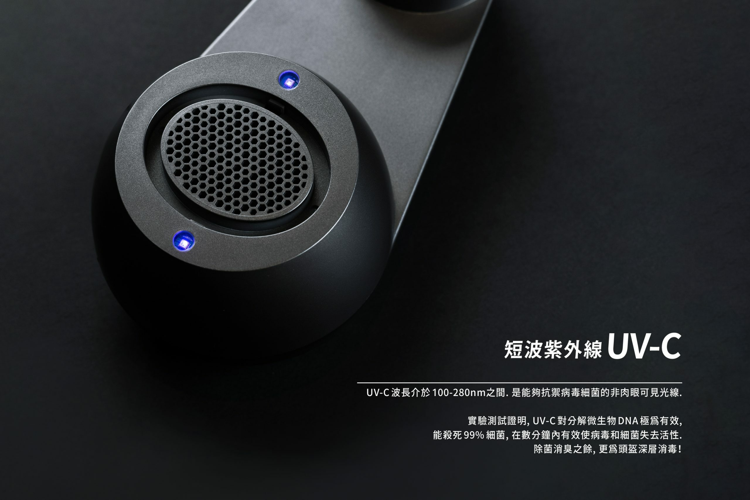 UV-C波長介於100-280nm之間,是能夠抗禦病毒細菌的非肉眼可見光線。實驗測試證明,UV-C對分解微生物DNA極為有效,能殺死99%細菌,在數分鐘內有效使病毒和細菌失去活性。除菌消臭之餘,更為頭盔深層消毒!
